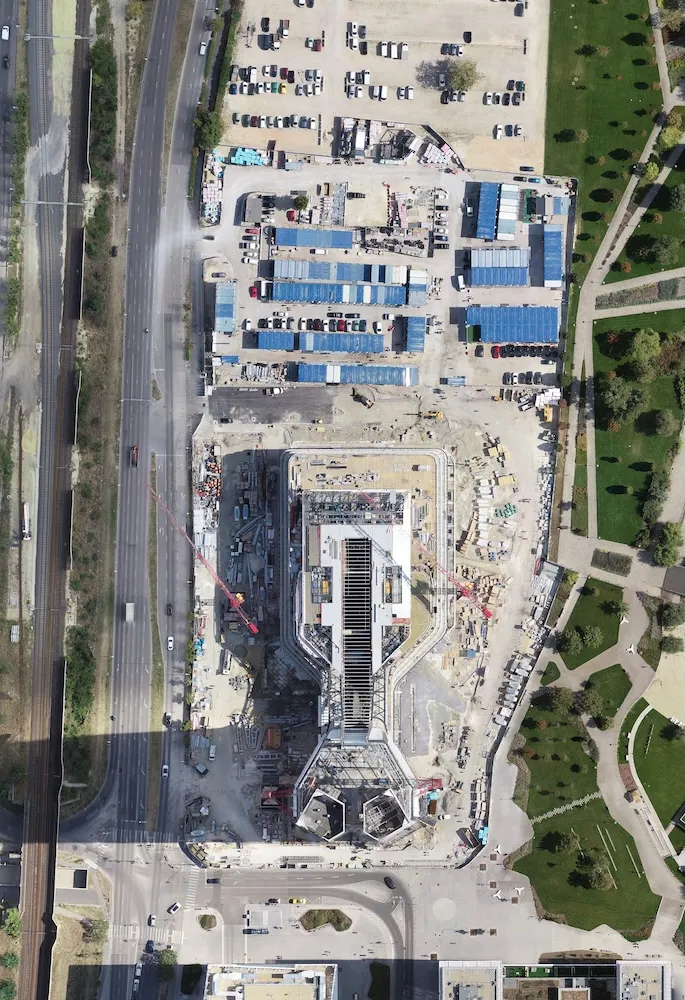 Teljes körű geodéziai támogatás az építési folyamat minden fázisában – alappont-hálózat, szerkezetépítési és belsőépítészeti kitűzések, folyamatos ellenőrző mérések, megvalósulási térképek.